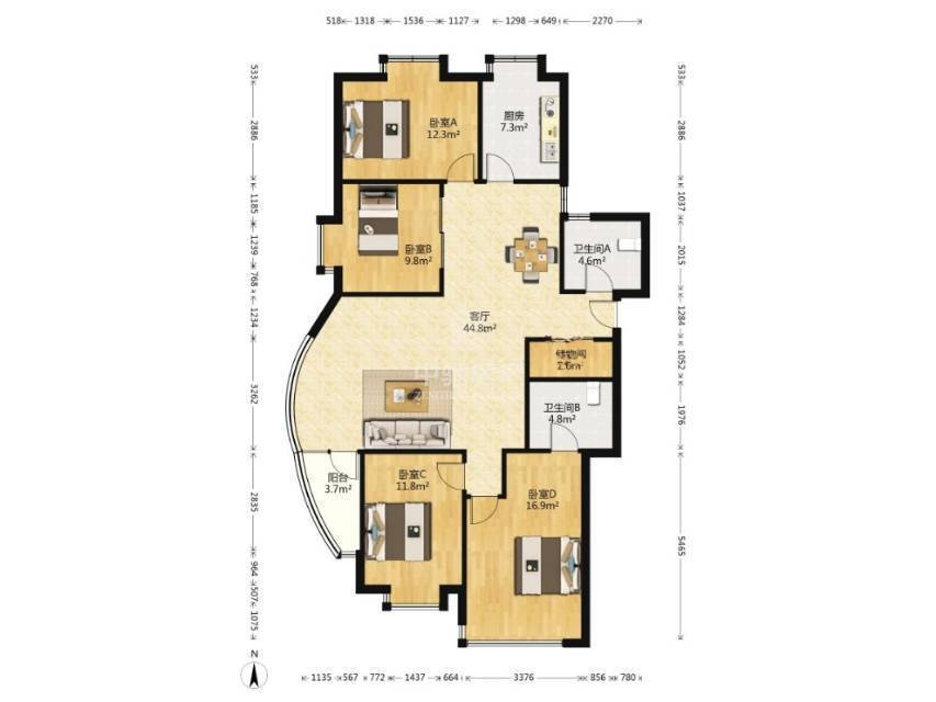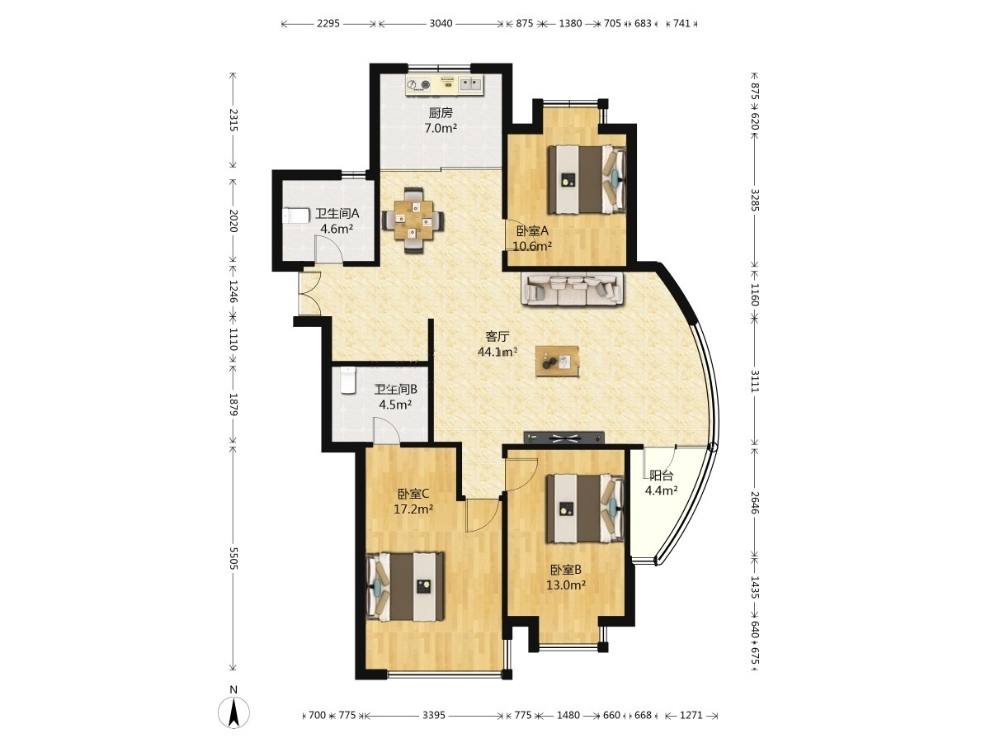 2200元/月 实验中学商圈 3室2厅 132.3㎡