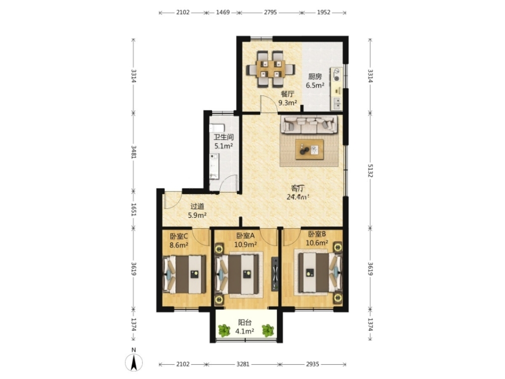 2室2厅