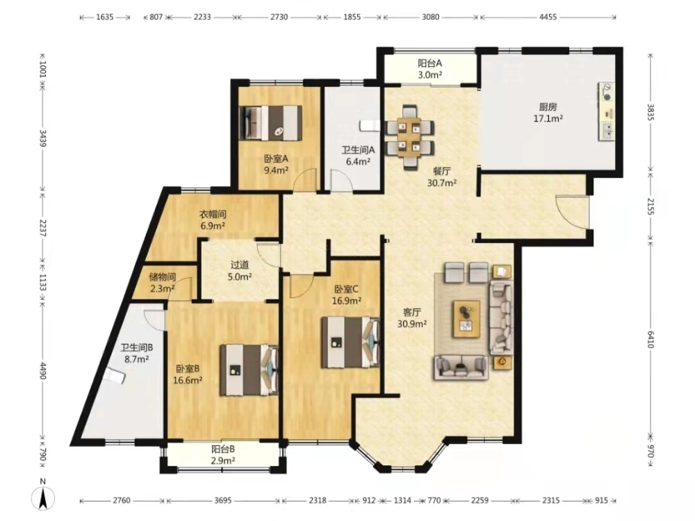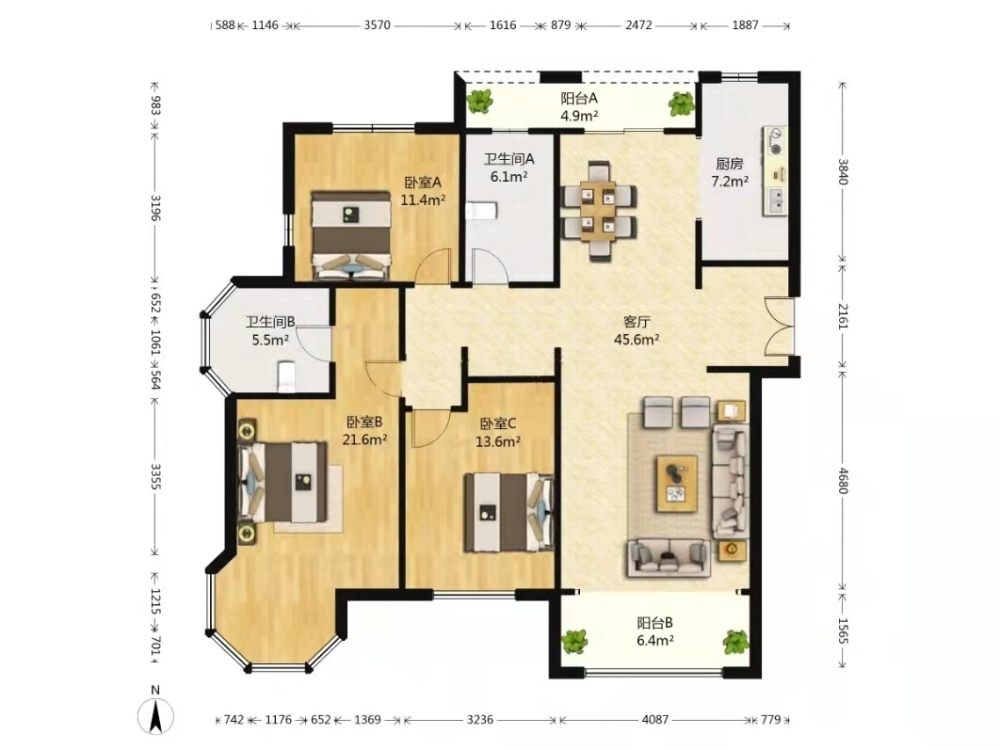 1349户 小区均为一梯两户,南北通透,*大户型,主力户型120平米三室两卫,140平四室两卫,适合改善需求。
