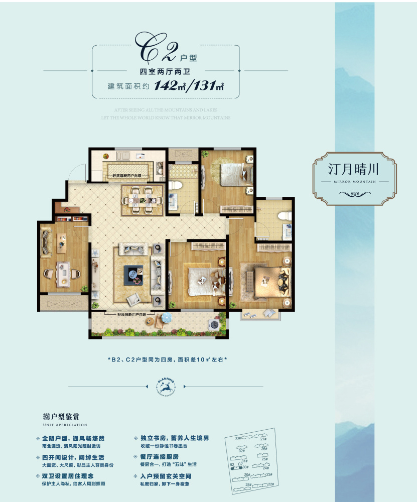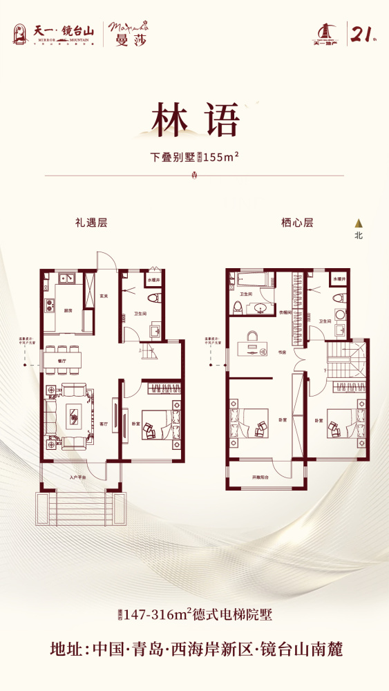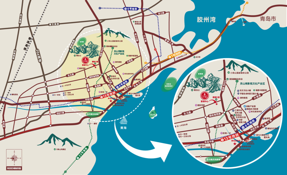 位置:海拔256米的镜台山南麓,东瞰小珠山,南眺灵山湾,灵山岛; 灵山湾影视文化产业板块内,距融创茂西北约5公里,项目距离海边约10分钟车程。 环境:北侧镜台山千亩山体公园,和正在创建国家AAAA 级景区及国家级科普基地的香博园。